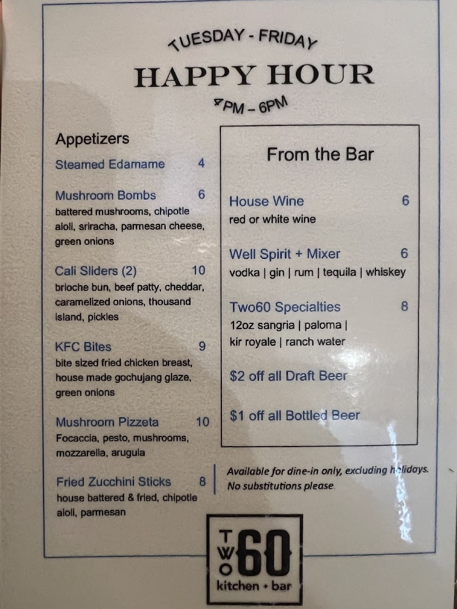 In the words of LaTrisha Major, who discovered Two60 while visiting Napa, “the food and service was so good that we went back the next day for lunch.” It's this kind of vibrant feedback from real customers that highlights why Two60 Kitchen Bar is quickly gaining the attention it deserves. With a blend of quality cuisine, a lively atmosphere, and attentive service, your experience here will undoubtedly leave you planning your next visit.